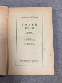 1936, изд-во: Художественная литература, город: М., стр. : 320 с., обложка: Твердый издательский переплет, формат: Обычный, состояние: Хорошее (потертость корешка, на форзаце пятна, на нахзаце небольшой дефект - см. фото). Роман ""Конец ночи"" - продолжение истории Терезы Дескейру. На сей раз мы видим эту женщину уже состарившейся, стоящей на грани смерти. Снова и снова она переживает заново прошедшую жизнь - и задается вопросом: было ли в ""вечной тьме"", которой она продолжает считать свое существование, хоть что-то светлое и счастливое?. .