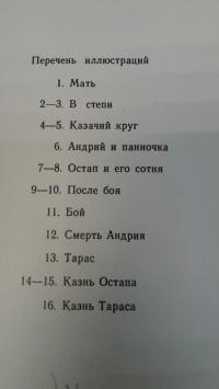 1973, изд-во: Изобразительное искусство, город: Москва, стр. : 16 открыток, обложка: Мягкая издательская обложка-папка, формат: Уменьшенный, состояние: Хорошее. . 1. Мать. 2-3. В степи. 4-5. Казачий круг. 6. Андрий и панночка. 7-8. Остап и его сотня. 9-10. После боя. 11. Бой. 12. смерть Андрия. 13. Тарас. 14-15. Казнь Остапа. 16. Казнь Тараса.