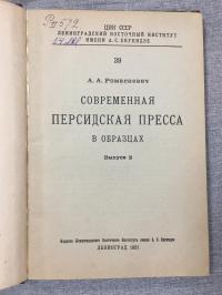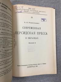 1931, изд-во: Ленингр. Восточный ин-т им. А. Енукидзе., город: Л., стр. : 127 с., тир. 1000 экз., обложка: Картонный твердый переплет, Обложки внутри., формат: Увеличенный, состояние: Хорошее (штампы, списанный библиотечный экземпляр). В сборник вошли расположенные в порядке принятом большинством газет и рисующие важнейшие моменты персидской действительности за охваченный короткий период времени выдержки из большей части руководящих общественным мнением газет, как тегеранских так и некоторых провинциальных, язык котрых в значительной мере является языком господствующих классов Персии, ее государственных и общественных учреждений.