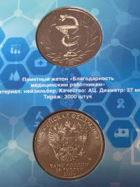 Марка. 25 рублей 2020 г. Самоотверженный труд медицинских работников с жетоном ММД в блистере