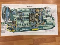 1966, изд-во: Транспорт, , город: Москва, стр. : 140 с., илл. + 2 схемы, обложка: Издательский переплет, формат: Очень большой, альбомный 35 х 47 см., состояние: Блок хорошее, комплектный, картонные обложки переплета потерты. . В красочно иллюстрированном альбоме представлена конструкция основных узлов тепловоза ТЭ3 (экипажная часть, дизель 2Д100, электрическое оборудование). Цветное изображение их сопровождается описанием устройства и работы каждого узла, а также краткими указаниями по его эксплуатации. В конце альбома показан рекомендуемый порядок осмотра и приемки тепловоза, приведены важные для локомотивной бригады сведения по устранению возможных неисправностей в пути следования, рассмотрены реостатные испытания тепловоза. Альбом является наглядным пособием при подготовке и повышении квалификации машинистов тепловозов и их помощников. К альбому прилагаются два красочных плаката. Схема электрического оборудования тепловоза. 62 х 90 см., Дизель 2Д 100 52 х 90 см.