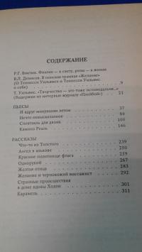 1993, изд-во: Прогресс - Гамма, город: Москва, стр. : 320 стр., обложка: Твердый издательский переплет., формат: Обычный, состояние: Отличное. . Томас Ланир Уильямс III (26 марта 1911 — 25 февраля 1983), известный под псевдонимом Теннесси Уильямс — американский драматург, сценарист, поэт. Лауреат Пулитцеровской премии. Его пьесы неоднократно ставились на мировых театральных сценах и экранизировались. Пьесы: И вдруг минувшим летом. Нечто невысказанное. Спектакль для двоих. Камино Реаль. Рассказы: Что-то из Толстого. Ангел в алькове. Красное полотнище флага. Однорукий. Желтая птица. Желание и чернокожий массажист. Странные происшествия в доме вдовы Холли. Карамель.