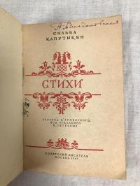 1947, изд-во: Советский писатель, город: М., стр. : 68 с., обложка: Мягкая издательская картонная обложка, формат: Уменьшенный, состояние: Хорошее. Сильва Барунаковна Капутикян (1919-2006) - крупнейшая армянская поэтесса XX века, писатель и публицист, академик НАН РА. Заслуженный деятель культуры Армянской ССР (1970). Заслуженный работник культуры Грузинской ССР (1980). В своих стихах часто обращается к темам любви, женского одиночества, патриотизма и самопожертвования.