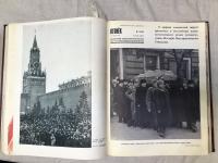 1953, изд-во: Правда., город: М., стр. : 32 с., ил. в №., обложка: В трех любительских переплетах., формат: Энциклопедический, состояние: Очень Хорошая сохранность. Единственный дефект: в № 14 утеряна половина последнего листа, стр. 31-32. НЕ библиотечные номера. . Годовой комплект из 52 номеров, с всеми передними и задними обложками и иллюстрациями на отдельных листа. Два траурных номера о смерти и похоронах Сталина в безукоризненном состоянии. Об аресте Берия главный редактор Огонька А. Сурков не напечатал ни слова, а вот славословия о Сталине исчезли практически сразу после похорон, но в приплетенном к № 35 годовому содержанию не пропущены статьи о Вожде за январь и февраль (Валентин Катаев. За великого Сталина! , А. Твардовский. О Сталине. и др.) В номере 25 одна из первых публикаций Евгения Евтушенко "Крылья".