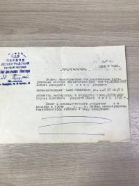 Письмо. Климентий Талавира художнику Чегоровскому Л.И.