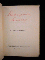 1958, изд-во: Художественная литература, город: М., стр. : 336 с., обложка: Тканевый твердый переплет, формат: Уменьшенный, состояние: Отличное. Алигер Маргарита Иосифовна (1915-1992) , русская поэтесса. родилась в Одессе в семье служащих. В 1934–1937 годах училась в Литературном институте им. А. М. Горького. Печаталась с 1933 года. А в 1938 году вышел её первый сборник стихов «Год рождения». В 1942 году написала поэму «Зоя» о 3. А. Космодемьянской, за которую в 1943 году удостоена Сталинской премии. Благодаря этой поэме, после которой её имя получило широкую известность, Алигер стала символом сталинской патриотической пропаганды. В 1942 году вышел её сборник «Памяти храбрых», в 1945 году поэмы «Сказка о правде» (вновь о Космодемьянской) и «Твоя победа», в 1953 году сборник «Ленинские горы». Алигер была членом редколлегии альманаха «Литературная Москва», который был провозвестником «оттепели». Когда Хрущёв решил подморозить собственную оттепель, Алигер мужественно выступила против него на правительственном банкете-дискуссии с писателями в 1956 году. В личной жизни она была глубоко несчастна. Её первый муж композитор Макаров был убит на фронте. Их дочь - талантливая поэтесса Таня Макарова - трагически ушла из жизни. Отец её второй дочери - Александр Фадеев - покончил жизнь самоубийством. Его дочь, выйдя замуж за немецкого поэта Энценсбергера и не найдя за границей своего места в жизни, тоже ушла из жизни по своей воле. Сама Алигер была найдена мертвой в придорожной канаве, недалеко от своей дачи.