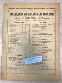 1916, изд-во: Т/дом Детлиф и К., город: М., стр. : 6 с., обложка: Издательская художественная обложка, формат: Энциклопедический, состояние: Очень хорошее. Слова Изы Кремер. Исполнялась Изой Кремер. Изабелла Яковлевна Кремер (более известна как Иза Кремер, 1882 — 1956, Кордова, Аргентина) — певица, артистка оперы и оперетты, переводчица. Иза Кремер станет первой певицей, которая начала петь на идиш со сцены. "Пакен" - известный парижский дом моды, основанный в 1891 году модельером Жанной Пакен. Он просуществовал до 1956 года. В песне Изы Кремер поётся о девушке-модели, которая работает в данном доме и встречает молодого кавалера, который всё надеется на свидание с ней. С портретом певицы и ее факсимиле. Любители могут найти сходство с современной Лолитой.