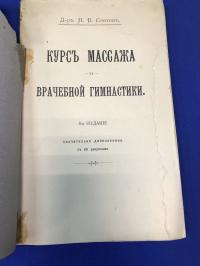 1913, изд-во: Товарищество скоропечатни А. А. Левенсон., город: Москва, стр. : 203 с. + 8 л. с 69 фото, обложка: Издательская обложка, формат: Увеличенный, состояние: Не библиотечный чистый, комплектный со всеми фото экземпляр, но на титуле и обложке оборвана полоска бумаги по правому боку. Все остальное в полном порядке. . Слетов Николай Викторович (1863-1930) – врач, массажист, специалист по мануальной терапии. Настоящая книга является одним из первых русских руководств по массажу и мануальной терапии. На 69 иллюстрациях классические приемы массажа начала ХХ века.