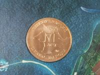 В набор входит монета номиналом 5 рублей, отпечатанная в 2019 г. и жетон.