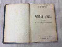 1906, изд-во: Книгоиздательство Культура, город: Спб., стр. : 244, 2 н. стр., обложка: Полукожаный переплет эпохи, формат: Обычный, состояние: Очень хорошее. Старая полукожа, НЕ библиотечный экземпляр. . Первое издание. «Русская Правда» или «Заповедная грамота великого народа российского, служащая заветом для усовершенствования России и содержащая верный наказ как для народа, так и для временного верховного правления» – основной программный документ Южного общества декабристов – был составлен П. И. Пестелем в 1824 г. в качестве наказа временному революционному правительству России. Он предусматривал уничтожение крепостного права и сословного строя, равенство всех граждан перед законом и установление республиканского правления. Наряду с «Конституцией Н. М. Муравьева», «Русская правда» П. Пестеля является важнейшим источником для изучения политических воззрений декабристов. Пестель П. И. (1793-1826). Несмотря на то, что от активного участия в заговоре он отошел еще в 1820 году, Пестеля признали опаснейшим преступником, относящимся к ``злодеям, стоящим вне всяких разрядов``. Причиной столь сурового наказания послужил принадлежавший его перу труд ``Русская правда``. Себя он готовил на роль тайного вождя, закулисного Бонапарта. Цитата: разделить все кавказские народы на два разряда: мирные и буйные. Первых оставить в их жилищах, а вторых силой переселить во внутренность России, раздробив их малыми количествами по всем русским волостям. . . русским переселенцам раздать все земли, отнятые у прежних буйных жителей, дабы сим способом изгладить на Кавказе все признаки теперешних его обитателей (стр. 48). Отдельную главу Павел Иванович посвятил еврейскому вопросу. Очень похоже, Что Иосиф Виссарионович внимательно прочел Наказ Пестеля. Если бы декабристы победили, 1917 год наступил бы в России на сто лет раньше.