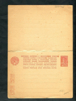 Почтовая карточка с оплаченным ответом. 7 коп.золотом + 7 ко...