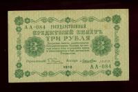 Бона. 3 рубля 1918 г. Государственный кредитный билет
