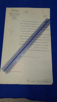 1912, город: Спб., формат: 36 х 24 см., состояние: Очень хорошее. На фирменном бланке Банка. Подпись Управляющего Митавским Отделением Банка. Резолюция "Согласен" и подпись-автограф Директора Банка.