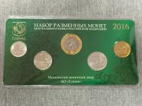 В набор входят 14 памятных монет номиналом 5 рублей, отчеканенных в 2016 году на ММД и жетон.