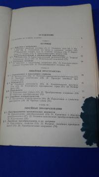 1956, изд-во: Наука, город: Москва, стр. : 340 стр., обложка: Твердый издательский переплет., формат: Увеличенный, состояние: Удовлетворительное. Есть подчеркивания. В углу страниц с 1-49 чернильные пятна . . Содержание: Матрицы и определители, Линейные пространства, Линейные преобразования, Многочленные матрицы, Унитарные и евклидовы пространства, Квадратичные и билинейные формы, Линейные преобразования билинейно-метрических пространств, Аффинные пространства, Предметный указатель.