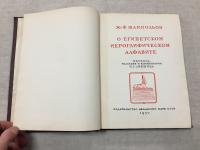 1950, изд-во: Издательство Академии Наук СССР., город: М., стр. : 272 с., 12 л. илл., обложка: Твердый издательский переплет., формат: Увеличенный, состояние: Очень Хорошее у блока. НЕ библиотечная. Корешок с дефектом внизу. . Шампольон Ж. -Ф. : О египетском иероглифическом алфавите. (Письмо к г. Дасье, непременному секретарю королевской Академии надписей и изящной, словесности относительно алфавита фонетических иероглифов, применявшихся египтянами для написания на их памятниках титулов, имен и прозваний греческих и римских государей. - Вступительная речь к курсу археологии. Юнг Т. : Отрывки из статьи Египет. - Анализ тройной Розеттской надписи. - Анализ имени Птоломей. -Анализ имени Береника. Фонетические иероглифы. - Лившиц И. Г. : Дешифровка египетских иероглифов Шампольоном. Комментарии. Тираж книги 5000 экземпляров. В издательском серийном переплете (Серия "Классики науки").