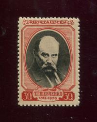 Марка. 125 лет со дня рождения Т. Г. Шевченко 30 коп. 1939 г. СССР (М21) #15608881