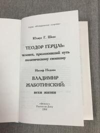 1998, изд-во: Феникс, город: Ростов-на-Дону, стр. : 288 c., обложка: Твердый издательский переплет, формат: Обычный, состояние: Хорошее. Теодор Герцль: человек, проложивший путь мировому сионизму. Недава И. Владимир Жаботинский: вехи жизни. Книга посвящена выдающимся деятелям еврейского национального движения, способствовавшим политическому и культурному возрождению своего народа.
