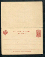 Открытое письмо с оплаченным ответом. 3 + 3 коп. Для Финляндии. 1890 г.