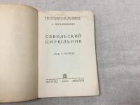 1935, изд-во: Музгиз, город: Москва, стр. : 128 с., обложка: Мягкая издательская обложка., формат: Уменьшенный, состояние: Хорошее. . Содержание: Творческий путь Россини. Содержание оперы "Севильский цирюльник". Ноты. Разбор оперы.