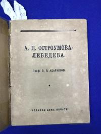 1922, изд-во: Изд-е Дома Печати, город: Москва, стр. : 47 с. Илл. + 3 л. Илл., обложка: Издательская художественная обложка, формат: Уменьшенный, состояние: Комплектный экземпляр хорошей сохранности, но обклеен пленкой. . Книга профессора В. Я. Адарюкова посвящена творчеству мастера пейзажной графики Анны Петровны Остроумовой-Лебедевой. Издание иллюстрировано 11 работами художницы в тексте и 3 авторскими хромолитографиями на отдельных листах. В приложении дан хронологический список работ художницы.