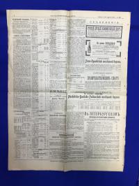1908, город: Спб., стр. : 6 с., формат: Газетный 51 х 46 см., состояние: Очень хорошее Сгибы. . Газета выходила ежедневно в Санкт-Петербурге с 1893 года по 1917 год, и с 1922 по 1930 гг. - О железном союзе Земств - Ослабление сахарного кризиса - С. -Петербургские профессиональные союзы - Рабочий мировой рынок - Катастрофа с аэропланом Райта - К событиям в Персии - Особое Совещание по вопросу о снижении цены на сахар - Меры пртив незаконного обращения сахаарина в России - 90 - летний юбилей Волжского пароходства - Котировки Спб. Биржи и др - Реклама