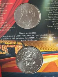 Монета. 25 рублей 2021 г. Творчество Юрия Никулина Цирк с жетоном в блистере ММД #15604143