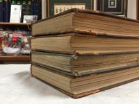 1912, изд-во: Тип. Сириус, город: СПБ., стр. : 72 с. в №, обложка: Полукожаны переплеты с золотым тиснением, формат: Энциклопедический, состояние: Близко к отличному, отличное. Три полукожаных красивых "полочных" переплета и один коленкоровый переплет эпохи с кожаной наклейкой. Годовой комплект в издательских обложках очень хорошей, практически коллекционной сохранности. Январь, февраль, март, апрель, май, июнь, июль-сентябрь, октябрь, ноябрь, декабрь. Знаменитый строенный номер с отдельным титульным листом, что позволяло сдавать его в букмагазины выше каталожной заниженной цены: "Двенадцатый год и иностранные художники в России". Полностью комплектный экземпляр, со всеми издательскими обложками внутри и со всеми многочисленными илл. и папиросными прокладками