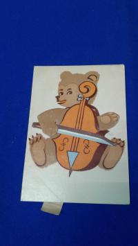 1967, изд-во: Киевская книжная фабрика, город: Киев, состояние: Очень хорошее. При потягивании за хвостик внизу карточки, медведь водит смычком по виолончели.