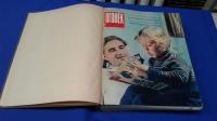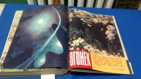 1961, изд-во: Правда, город: Москва, стр. : 52 номера., обложка: Глухой любительский твердый переплет второй половины 20 - го века., формат: Очень большой., состояние: Очень хорошее. . Все обложки, цветные иллюстрации и страницы присутствуют. В данном журнальном собрании имеется легендарный «гагаринский» номер «Огонька» с двумя издательскими обложками. Библиофильская редкость! Апрельский номер «Огонька» уже был сверстан, когда пришла новость о первом полете человека в космос. В части тиража была добавлена вторая обложка с портретом Юрия Гагарина и изменены материалы на первых 8-ми страницах. Смирнов С. По следам бессменного часового. Живет ли на Марсе Аэлита? Зигель Ф. Может быть. . . Фесенков В. Г. Едва ли. . . Монолог покупателя. Исполняет Аркадий Райкин. Халов П. Всем, кто меня слышит. Владимиров В. Детские годы транспорта. Шрайер В. Эстафета воздушного шпионажа. Погодин Н. Два часа у Чаплина. Бабич Е. Слово о хоккее. Советской науке рукоплещет мир! Космический корабль вернулся на Землю. Асанов Н. Не надо топтать цветы. Коршунов М. Крымские рассказы. Голиков А. По дорогам космоса. Горюнов Д. Здравствуй, Куба. Статья `Шакалы` про валютчика Яна Рокотова. Один номер посвящен полету в космос Германа Титова. В нескольких номерах напечатан рассказ Артура Миллера `Неприкаянные` с рисунками Горяева В., по которому был снят фильм с Мэрилин Монро. . . .