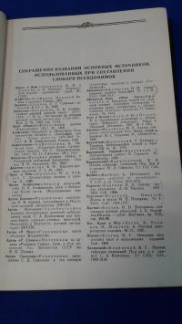 1956-1960г, изд-во: Издательство всесоюзной книжной палаты, город: Москва, стр. : 444 стр., 388 стр., 416 стр., 560 стр., обложка: Твердый издательский переплет., формат: Энциклопедический, состояние: Очень хорошее. НЕ библиотечный экземпляр. Во II томе вырезан кусок заднего форзаца. Редкие пометки в Библиографическом списке I-го тома. . Настоящее издание `Словаря псевдонимов` включает все материалы, собранные И. Ф. Масановым путем использования разнообразных печатных, а также архивных источников. Словарь псевдонимов состоит из двух отделов. В первом отделе (тома 1- 3) даны алфавитные указатели псевдонимов. Второй отдел словаря (том 4) содержит алфавитный список авторов, псевдонимы которых раскрыты в настоящем издании. В словарь включены: 1) псевдонимы в подлинном смысле этого слова, а также инициалы и другие сокращения подлинных и ложных имен, 2) действительные фамилии, если они указаны под произведениями, фактически принадлежащими другим лицам, 3) разные знаки (звездочки, цифры и др.), поставленные под произведениями в качестве подписей авторов, 4) действительные фамилии авторов с искаженными инициалами или искажения действительных фамилий, 5) девичьи фамилии писательниц, измененные при замужестве. Абсолютно не утративший своего значения справочник для псевдонимов русских писателей.