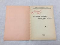 1943, изд-во: Тип. "Красное знамя", город: Томск, стр. : 24 с., обложка: Издательская обложка, формат: Обычный, состояние: Очень хорошее. . Редчайший провинциальный литературный альманах времен войны. Стихи и песни разных авторов, один рассказ и частушки. (У Ванюши по работе, / Видно сердце не болит: / Полчаса цыгарку вертит, / Полтора часа дымит.) Тираж 600 экз. Экземпляр с типографской надпечаткой: Делегату первого съезда молодых рабочих Новосибирской области. На титуле карандашом: Авторский экз. Г. Ельцов. Георгий Александрович Ельцов (1914-1973) - крупный краевед и известный культурный деятель г. Томска. Уника. Музейный уровень. тираж 600 экз.