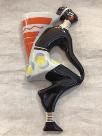 Два настенных кашпо. Девушка Конго и девушка Либерия. Высота 25 см. У кашпо Конго дефект - трещина вверху, реставрация(склейка) , см. фото. У кашпо Либерия - небольшие потертости.