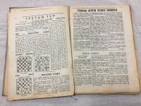 1936, изд-во: Рабочая Москва, город: Москва, стр. : 80 с. Илл., фото., обложка: Издательский переплет, формат: Энциклопедический, состояние: Удовлетворительное. Читали. НЕ библиотечный. Дефект (вырезки) в у двух листов в № 4. . Остальные номера в хорошем виде. Переплет с загрязнениями. . Родной издательский переплет. Специальный выпуск газеты *64* Шахматно-шашечная газета № 1-10 за 1936г.