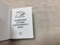 2009, изд-во: ТомСувенир, город: Томск, стр. : 224 с., ил., обложка: Издательский твердый переплет с суперобложкой, формат: Миниатюрный Размер блока 48 х 68 мм, состояние: Отличное. Самые популярные, известные и любимые стихотворения поэтов серебряного века (Анненский, Ахматова, Бальмонт, Блок, Гумилев, Мандельштам, Пастернак, Маяковский, Северянин, Сологуб, Цветаева) . В качестве иллюстраций портреты поэтов.