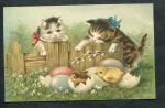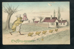 1900-е, изд-во: PFB, состояние: Хорошее. Мелкие дефекты фона. . Конгревное тиснение - дети и тележка. Яйцо - аппликация из сиреневой ткани. Редкость с неповрежденной аппликацией.