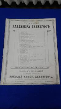 1900-е, изд-во: Н. Х. Давингоф., город: СПБ., стр. : 4 стр., обложка: Мягкая издательская обложка, формат: Энциклопедический, состояние: В целом хорошее, небольшая потрепанность края 1 стр. . Посвящается Нине Георгиевне Александровской. В художествен...