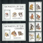 Марки и блок. Обезьяны 1994 г. Гамбия (М8-17)