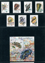 Марка и блок. Морские улитки и моллюски 1992 г. Танзания (М9...