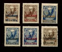4 р. + 4 р. /5000 руб. - серебряная и бронзовая надпечатки, 1 р. +1 р. /10 руб - бронзовая и золотая надпечатки, 2 р. + 2 р. / 250 руб. - простая и тонкая бумага. Без наклеек. На марку номиналом 5000 руб. с надпечаткой " 4 р. + 4 р. Филателия - трудя...