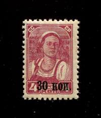 Марка. Стандарт. Работница Надпечатка 1939 г. Без водяного з...