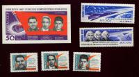 Почтовый блок и марка. Полет космонавтов В. М. Комарова, К. П. Феоктистова и Б. Б. Егорова 1964 г. СССР (М41)