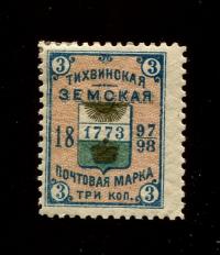 Марка. 3 коп. 1897-98 г. Тихвин Земская почта Россия (М20)#15607427