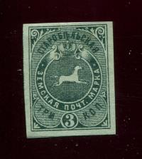 Марка. 3 коп. Земская почта. Псковский уезд. Без перфорации....